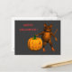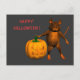 Dulce ratoncito sujetando una cabeza de calabaza para Halloween