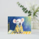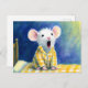 Un tierno bostezo de ratón sentado encima de una cama vestida con arte generado por PJs AI de gingham amarillo