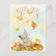 El gracioso ratón de acuarela de personalizado dibujado a mano es feliz jugando con hojas coloridas cayendo