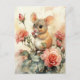 Ratón y rosas rosas rosadas. Puede agregar texto.