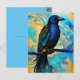 Postal Raven azul negro, abstracto azul y oro