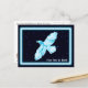 Una simple imagen de línea azul y blanca brillante de un Raven (Corvus corax) sobre un fondo estrellado. Añade tu propio texto.