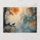 Pintura de aceite de estilo barroco de un cuervo encaramado en una rama en un bosque de otoño maloliente.