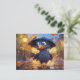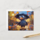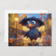 Postal Raven In Rainy Autumn Street With Umbrella