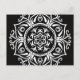 Esta mandala blanca se sienta sobre un fondo negro. Parte de la colección Rosenn Mandala.
