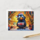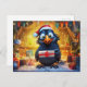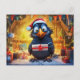 Postal Raven With Santa Hat And Gift In Festive Scene