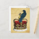 El cuervo vintage encaramado sobre una corona roja y dorada, real con un fondo de abeja ámbar y escritura.