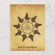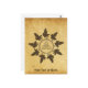 Nueve cuernos animados (Corvus corax) rodean un anillo norso/celta. En el centro aparece un triquetra, una figura triangular de tres arcos entrelazados. Todo está superpuesto a una imagen de fondo de papel antigua, lo que le da un toque medieval. Personalizar agregando su propio texto.