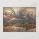 Es la puesta de sol, pero las nubes están oscureciendo el sol, produciendo múltiples manchas de luz golpeando el suelo y dirigiéndose hacia el cielo. Desde abajo, un pantano refleja la luz que se desvanece en un colorido cuadro.