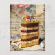 Esta imagen de medios mixtos muestra una deliciosa porción de pastel de bodas, con toda la elegancia y sofisticación de una ocasión especial. El pastel es una obra de arte en sí mismo, con su superficie perfectamente lisa y delicadas capas de esponja y crema. La porción se sitúa sobre un fondo de estilo álbum de recortes, que añade un toque de encanto vintage a la imagen. El fondo presenta un collage de diferentes elementos, incluyendo viejas fotografías, notas manuscritas y delicados patrones. El efecto general es de elegancia atemporal, que captura la romance y la alegría de un día de bodas.
