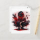 "Rebelión de las mariposas" Una joven audaz con el vello negro y rojo flotando en una nube de humo y tinta salpicada, rodeada de vívidas mariposas rojas. Su expresión feroz, sus botas de combate y su atuendo fuera de hombro reflejan una mezcla de fuerza, tristeza y transformación en un estilo gótico moderno.