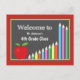 Esta recepción de nuevo a la postal de la escuela ofrece un tema de la pizarra acentuado con lápices coloreados y una manzana roja. Este diseño es perfecto para cualquier grado elemental. Personalice con un mensaje de encargo en la parte trasera.