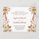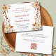 Invitación para la recepción de la boda por la tarde de flores silvestres de otoño... Nuestra exclusiva invitación para la recepción por la tarde de tamaño postal "frontal y trasero" presenta un diseño floral con tema de otoño en tonos de terracota, rosa, crema y salvia que bordean el texto de información de su recepción en un fondo blanco crujiente. La escritura en terracota combinada con texto serif negro y en cursiva expresiva crean un aspecto rústico simple, ideal para una boda de finales de verano u otoño. La parte trasera de la invitación contiene el código QR del sitio web de su boda, así como la URL del sitio web escrita en texto para que sus invitados puedan responder fácilmente en línea y también ver los detalles que necesitan saber, incluyendo opciones de comida, alojamiento disponible y sitios de registro de regalos. Todo el texto de ejemplo se puede reemplazar fácilmente con su propia información en la plantilla de personalización. Los sobres para esta invitación de tamaño postal están