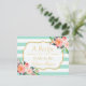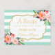 Postal Receta de Té de Boda Floral con Rayas Verde Menta
