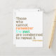 El filósofo español George Santayana dijo: "Aquellos que no recuerdan el pasado están condenados a repetirlo".