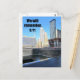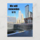9/11 Piscina conmemorativa con edificios en el fondo, con el mensaje: "Recordaremos. 9/ll"