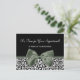 Moda de moda en blanco y negro con tiras de leopardo y salón de belleza, tarjeta postal con una elegante cinta verde oscura atada a un elegante arco. Personalice este elegante diseño de impresión animal añadiendo el nombre de peluquero o esteticista. Imagen plana impresa, no arco real.