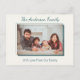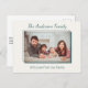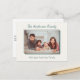 Comparte tu amor y calidez con esta elegante tarjeta postal de foto familiar. Cuenta con una foto personalizable enmarcada en suaves acentos de color azul verdoso con dos áreas de texto editables: el nombre de tu familia y un mensaje sincero. El fondo neutro y la fuente moderna la hacen perfecta para enviar saludos, notas de agradecimiento o compartir momentos especiales en familia.
