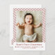 Featuring a warm red-and-white candy stripe border and elegant typography, this festive design is the perfect way to share your baby’s arrival and first holiday season with loved ones.