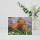 Esta tarjeta postal contiene la Red Eft, la etapa terrestre juvenil del Newt Oriental (o Red-Spoted Newt). Este curioso naranja con manchas rojas acaba de salir del estanque para pasar dos o tres años en tierra antes de regresar al agua como una salamandra de cultivo completo. Dentro hay dos pequeños pies rojos.