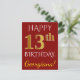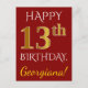 Postal Red, Faux Gold 13th Birthday + Nombre personalizad
