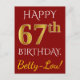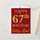Postal Red, Faux Gold 67th Birthday + Nombre personalizad