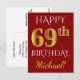 Postal Red, Faux Gold 69th Birthday + Nombre personalizad