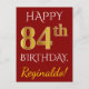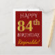 Postal Red, Faux Gold 84th Birthday + Nombre personalizad