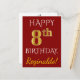 Postal Red, Faux Gold 8Cumpleaños + Custom Name Postcard