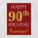 Postal Red, Faux Gold 90th Birthday + Nombre personalizad