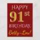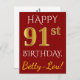 Postal Red, Faux Gold 91st Birthday + Nombre personalizad