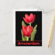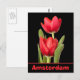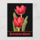 Esta postal de Amsterdam, Países Bajos, presenta dos hermosos tulipanes rojos con hojas verdes sobre un fondo negro. La ubicación de 'Haarlem' puede cambiarse fácilmente a sus necesidades utilizando la práctica función de plantilla disponible en esta tarjeta postal