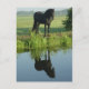 Postal Reflexión de caballo frisón en el agua
