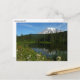 Postal Reflexión sobre el lago Mount Rainier con flores s