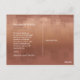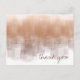 Esta moderna postal boda "Gracias" es un poco informal, con un ambiente cálido y personal, y presenta un diseño abstracto de acuarela que se asemeja a las reflexiones sobre el agua. Este ejemplo tiene una paleta de colores de gradiente que va desde el melocotón pálido hasta el color terra oscuro. Personalizar con el nuevo nombre de matrimonio de la novia y el nuevo novio y mensaje de agradecimiento personal usando la plantilla proporcionada. Buscar ID774 para ver el conjunto de coincidencias completo y las opciones de color adicionales.