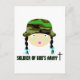 Este diseño cuenta con un bonito chica con colas de cerdo y arcos azules. El maquillaje verde, los labios rosados y un casco del ejército la hacen realidad. Las palabras "Soldado del Ejército de Dios" están escritas en letras negras con un contorno verde. Incluso puede personalizar este diseño agregándole su propio texto