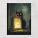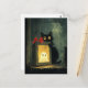 Una divertida escena de Halloween con un fantasma en una caja de regalos que tiene un gato negro en sus brazos