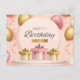 Postal regalos de cumpleaños amor tarta oro globos rosado