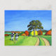 Pintura caprichosa de dos vacas mirando al espectador de una manera curiosa. El campo es de colinas onduladas típicas de muchas partes de Inglaterra y Europa. El carril rural serpentea por las colinas y se extiende a lo lejos.
