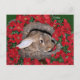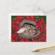 Conejo de conejo Sandy Flemish Giant en un tronco hueco rodeado por una tarjeta postal de Navidades de fotografía de la poinsettias