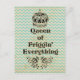 Divertido sentimiento de "Reina de todo", corona vintage y angustiado patrón de fondo de chevron.