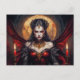 la reina de los vampiros regales se encuentra elegantemente en una cámara oscura, iluminada por una luna brillante y rodeada de velas parpadeantes, poder exuberante y misterio.