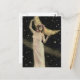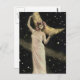 Fotografía de época que muestra a una encantadora dama de traje antiguo parada en una posición dramática antes de una luna creciente.