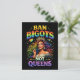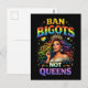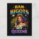 Una radiante reina de cabello arcoíris con atuendo brillante resplandece bajo un audaz lema de orgullo que celebra la identidad, la fuerza y la autoexpresión.