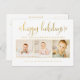Magnífica tipografía de Relieve metalizado de oro falso en la parte delantera de esta postal de diseño a la que puedes subir con 3 de tus propios retratos de fotos de recién nacido. Fácil y rápidamente personaliza esta tarjeta postal de navidades de diseño con imprenta profesional, escribiendo sobre el texto de ejemplo y añadiendo sus propias fotografías para bebés. Elegante, moda, escritura de oro simple y elegante/tipografía cursiva. La fabulosa fotografía de muestra utilizada en esta plantilla es gracias a la talentosa fotógrafa Carrie Keller Bitting de Woven Nest Photography Pty Ltd - Carolina del Norte, Estados Unidos.