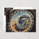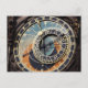 fotografía en azul negro y naranja. fotografía de color detallada de un hito histórico, medieval, un viejo reloj astronómico en praga en europa con signos azules, naranjas y marrones, astrología y números romanos. fotografía en blacks y naranjas.