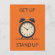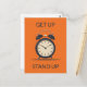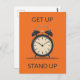 Esta postal tiene un ilustracion de reloj de escritorio simple contra fondo naranja sólido con el personalizable "levántate, levántate".