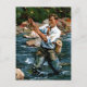 Afiche de viaje restaurado y mejorado digitalmente que muestra a un hombre caminando en un río y pescando. Se han eliminado inperfecciones y lágrimas. Colores corregidos. Imagen cortesía de la Biblioteca del Congreso.