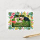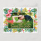 Si estás teniendo un boda con temática tropical, esta es la postal SAVE THE DATE perfecta con tu foto de compromiso. Su foto horizontal está rodeada de flores tropicales acuáticas y follaje. "Save the Date" escrito a mano en un guión de pincel dorado sobre tu foto horizontal. El oro "¡se está casando!" en la parte de atrás con información adicional. El gradiente negro se solapa con la foto, por lo que destaca el guión dorado. Puedes eliminarlo si no es necesario.