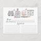 Tarjeta de receta de cocina con herramientas de cocina gris y rosa. La parte delantera de la carta tiene espacio para el título de la receta, de la cocina de y los ingredientes. La parte de atrás tiene una línea para las direcciones. Las invitaciones coincidentes están disponibles en nuestra tienda